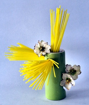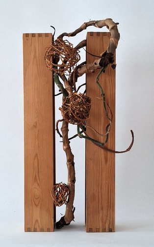 Es war einmal – neu interpretiert Manche Behälter sind Lieblingsgefäße, die man gerne gebraucht, andere bleiben oft lange Zeit unbenutzt. Mit neuen Ideen oder Materialien entfalten gerade sie überraschende Wirkungen. Getrocknete, gefärbte, gebleichte oder unkonventionelle Materialien lassen sich immer wieder in anderer Weise arrangieren. Es ist nicht möglich, ein Ikebana zu wiederholen, weil es nie zwei gleiche Blumen gibt. Doch kann das, „was einmal war“ als Inspiration für etwas Neues dienen.