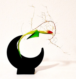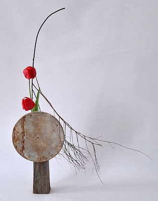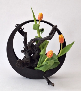 Tsuki (Mond) Wie der Berg Fuji zählt der Mond zu den Motiven der traditionellen japanischen Künste. Der Name Sogetsu bedeutet "Gras und Mond". Das Logo der Sogetsu-Schule, die abnehmende Mondsichel, hat seinen Ursprung im Wappen, das der Familie des Gründers vom Kaiser verliehen wurde. Es bezieht sich auf das Gedicht: "Es gibt keine Berge in Musashino, dort steigt der Mond aus den Gräsern und sinkt wieder in die Gräser zurück." Es gibt eigene Gefäße in Mondform aus Holz, Metall oder Keramik. Üblicherweise gelten für diese Arrangements bestimmte Gestaltungsregeln. Im Jiyubana (Freier Stil) sind auch Kombinationen mit anderen Themen möglich.
