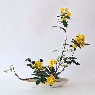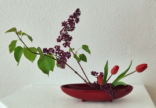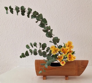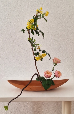 Fune (Boot) Ikebana-Gefäße in boot-ähnlichen Formen sind aus Holz, Bambus, Keramik oder Metall angefertigt. In der klassischen Auffassung wird das Gestaltungsmaterial "Segelblume", "Ruderblume" oder "Seilblume" genannt, andere Pflanzen bilden die Ladung. Das Gesteck kann die Fahrtrichtung - ausfahrend, heimkehrend - oder das im Hafen ruhende Schiff andeuten. Blätter - ganz oder zugeschnitten - lassen sich als Segel verwenden.